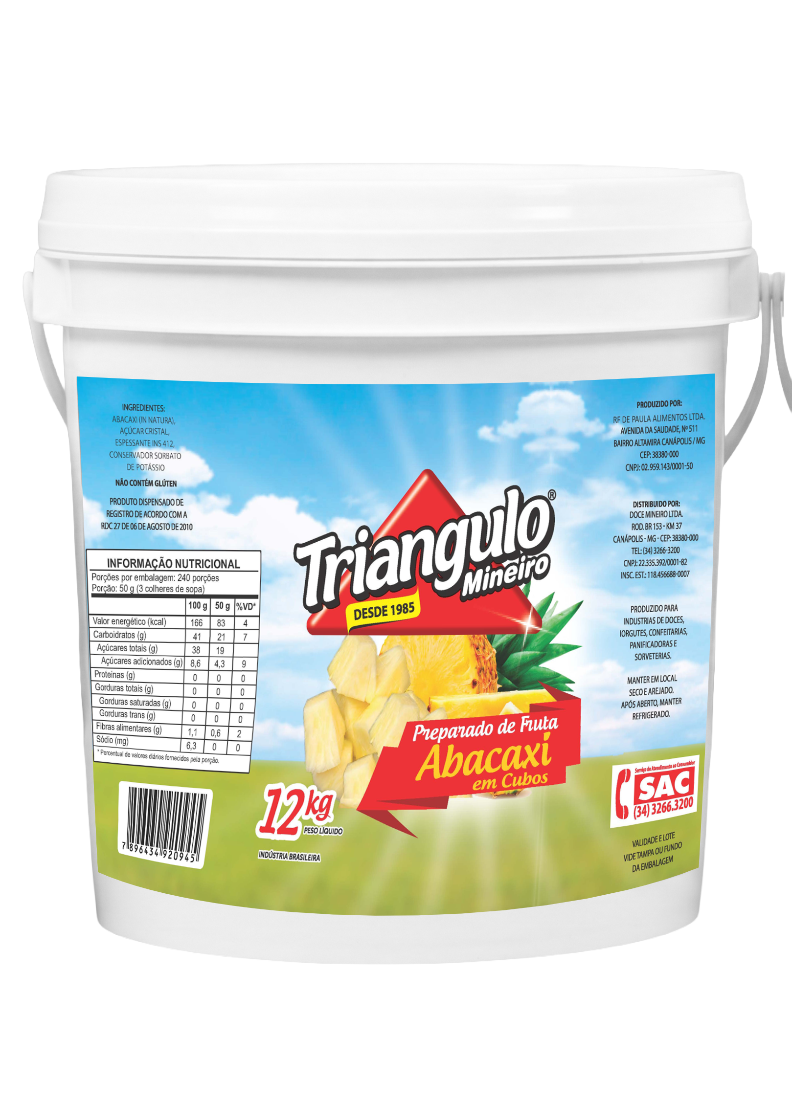 Composição: Abacaxi in natura, açúcar cristal, espessante INS 412, conservador sorbato de potássio.