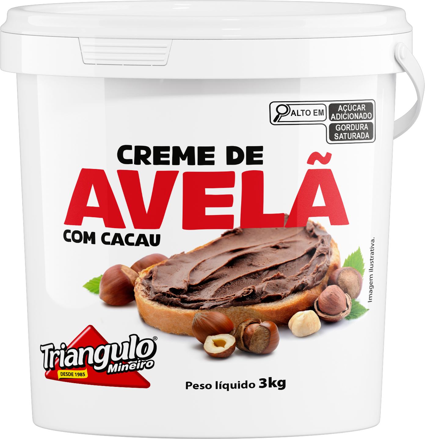 Composição: Açúcar, Gordura Vegetal, Leite em pó Desnatado, Pasta de Avelã, Soro em pó, Cacau em pó, Amido Modificado, Emulsificante: INS 471, Conservante: Sorbato de Potássio, Estabilizantes: Citrato de Sódio, Lactose e Aromatizantes.